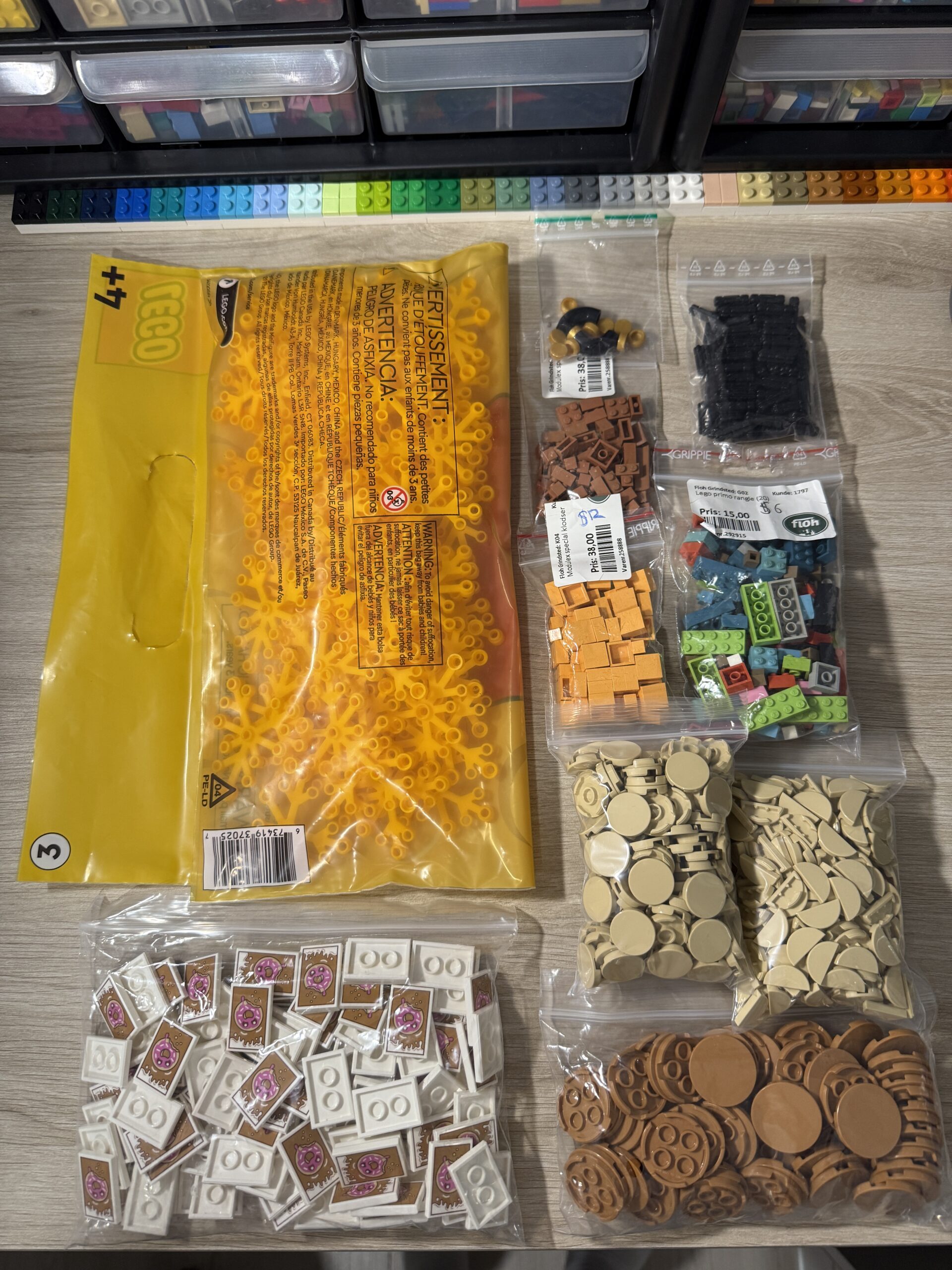 11/21: This is a fun one! I have been amassing the parts for this build for awhile now, through many degenerate purchases. The worst of which however was 200 grams worth of donut tiles, courtesy of an @aiden.builds trip to the factory store in Germany! A couple more factory store pickups like tan and medium nougat circle and half circle tiles, as well as a Bricklink order of 30+ botanical rings, and all the pieces were in place. That said, this build needed a kick starter, something to inspire me to begin.