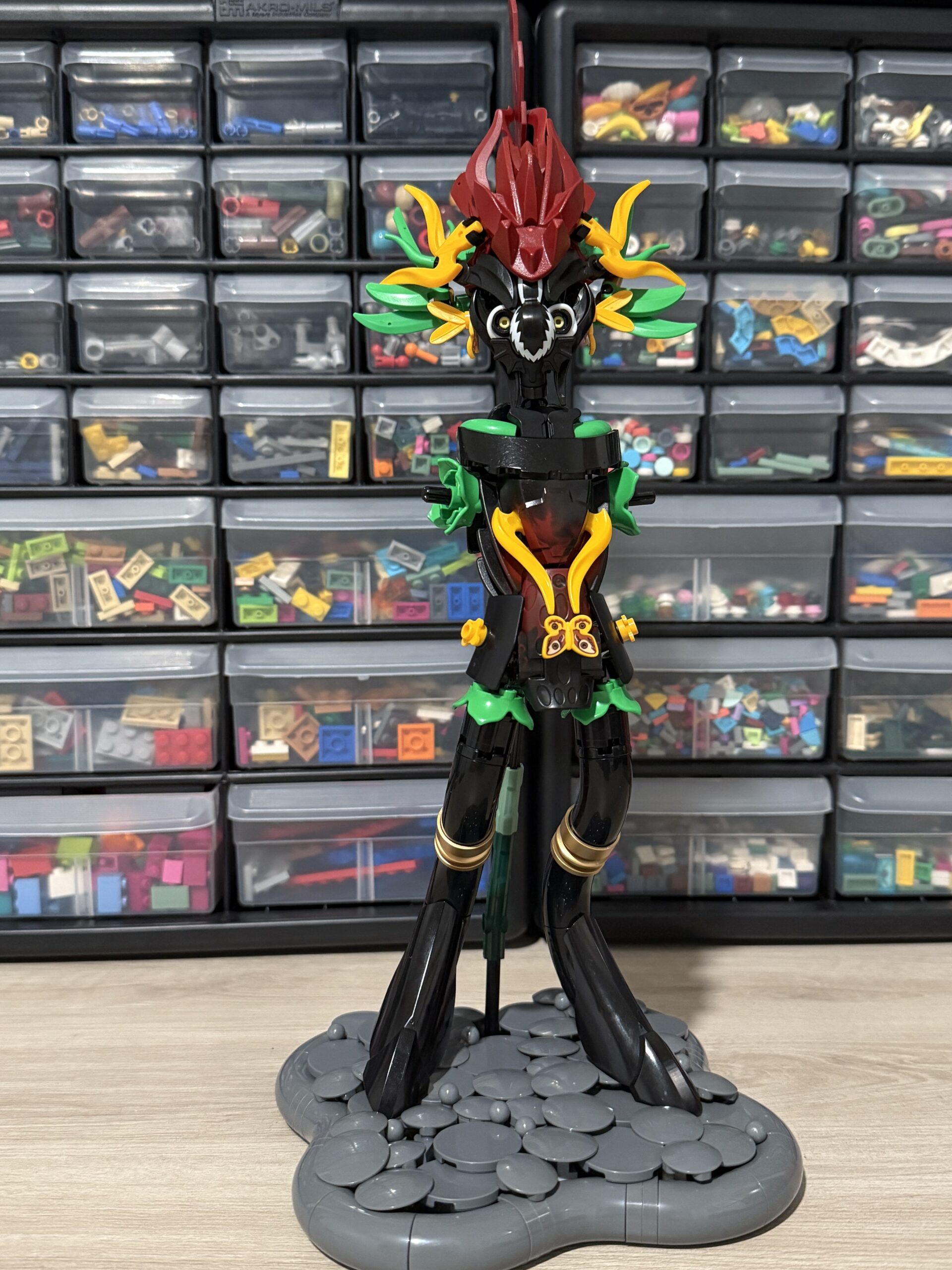 The head design proceeded to sit in a drawer for the remainder of summer… Oh well. That said, the lovely people over at the BII (Builder Improvement Initiative) inspired me to pick it back up with their monthly challenge themed around character design! So I got to work and made up a body. This actually fell into place quite easily with the Radiak mask allowing for some nice color blocking. For the rest of the design, I wanted to go for a lengthy looks, loosely inspired by many of @Djokson‘s builds. However, this is where I started to run into problems.