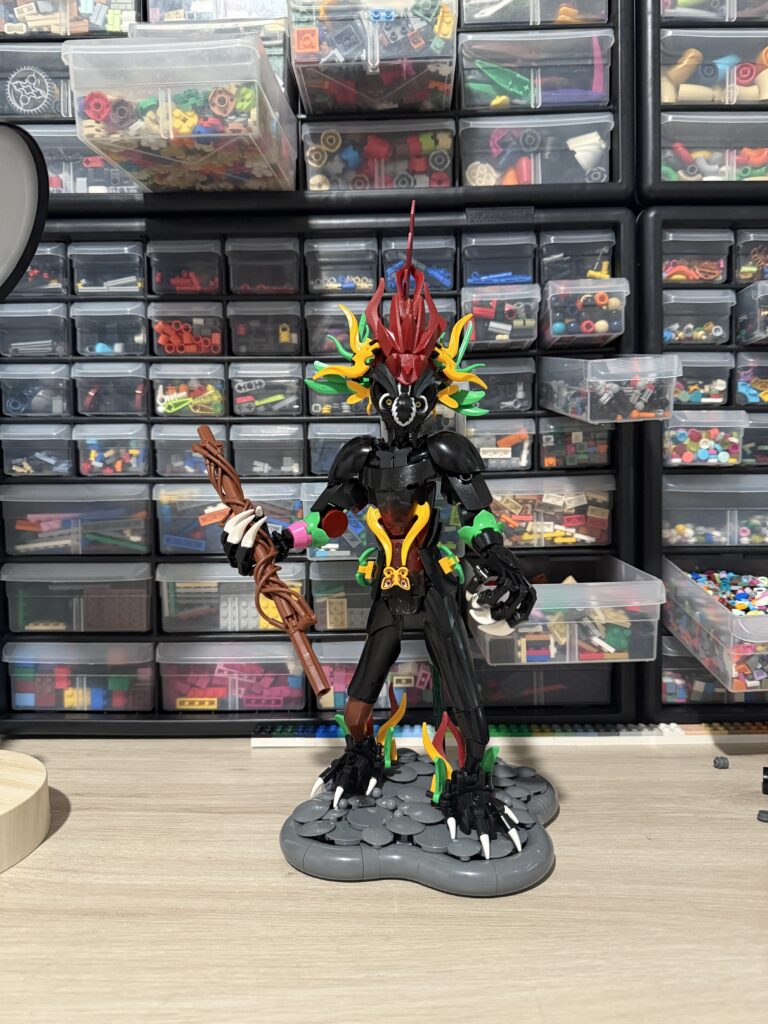 11/21: Today is the first day I will start logging WIP threads, so here is the first one! This build started over the summer with a head table-scrap I threw together revolving around the skunk‘s tail. I was very inspired by the color choice of @hlebass69 (Hlebo Bas) and his wonderful dragon build titled The Ceremony during Biocup 2025. I used a slightly altered red/yellow/green color scheme to give the crown a nice pop compared to the regular black and white head!